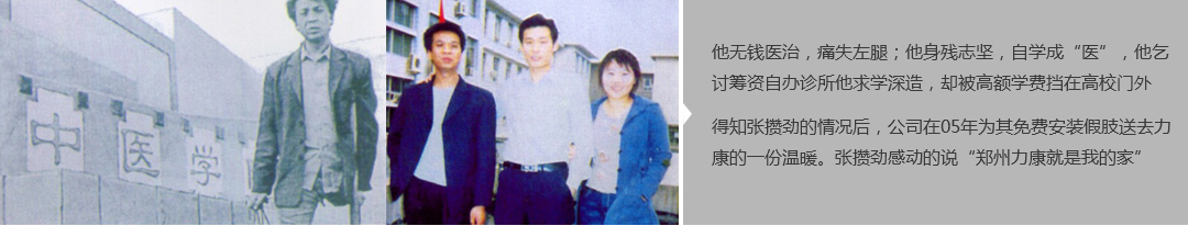 鄭州市力康假肢矯形器有限公司(簡稱力康),是一家專業(yè)從事假肢矯形器的設(shè)計、研發(fā)、制作及裝 配的專業(yè)機構(gòu)。成立于1992年是河南省唯一一家福利企業(yè)。力康下設(shè)業(yè)務(wù)部、技術(shù)部、住院部、康復 部、售后服務(wù)部,并配有現(xiàn)代化的裝配車間和功能齊全的訓練大廳,為殘疾朋友康復訓練提供了可靠 保障。總經(jīng)理穿戴假肢多年,有著豐富的臨床經(jīng)驗和親身體會;多年來,力康已為全國幾十萬名殘疾 朋友安裝上舒適、美觀、耐用的假肢和矯形器具,使他們更大限度地恢復了正常的工作和生活。“產(chǎn) 品即人品”的質(zhì)量理念、先進的技術(shù)、實惠的價格、完善的售后服務(wù)是力康取勝的法寶……